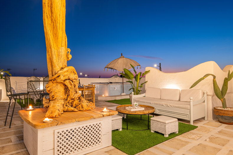 La terrazza panoramica attrezzata con piscina jacuzzi è senza dubbio uno dei punti di forza di Terrazze e Conchiglie. Questa zona esterna offre agli ospiti la possibilità di rilassarsi al sole, ammirare tramonti spettacolari, immergersi sotto il cielo stellato e di godere di una vista panoramica mozzafiato sulla costa. La piscina jacuzzi, permette di rinfrescarsi durante le calde giornate estive e di coccolarsi con un idromassaggio rigenerante. Qui potrai gustare la tua colazione o sorseggiare un drink al tramonto, immerso in un'atmosfera suggestiva. Inoltre, la terrazza è attrezzata con lettini mare, permettendoti di goderti una giornata rilassante, l’ arredamento è curato nei minimi dettagli e garantisce il massimo comfort è il luogo ideale per trascorrere momenti di relax e divertimento all'aria aperta , questa terrazza sarà sicuramente il luogo perfetto per creare ricordi indimenticabili durante la tua vacanza da sogno nel Salento.Cosa Vedere a Torre Suda